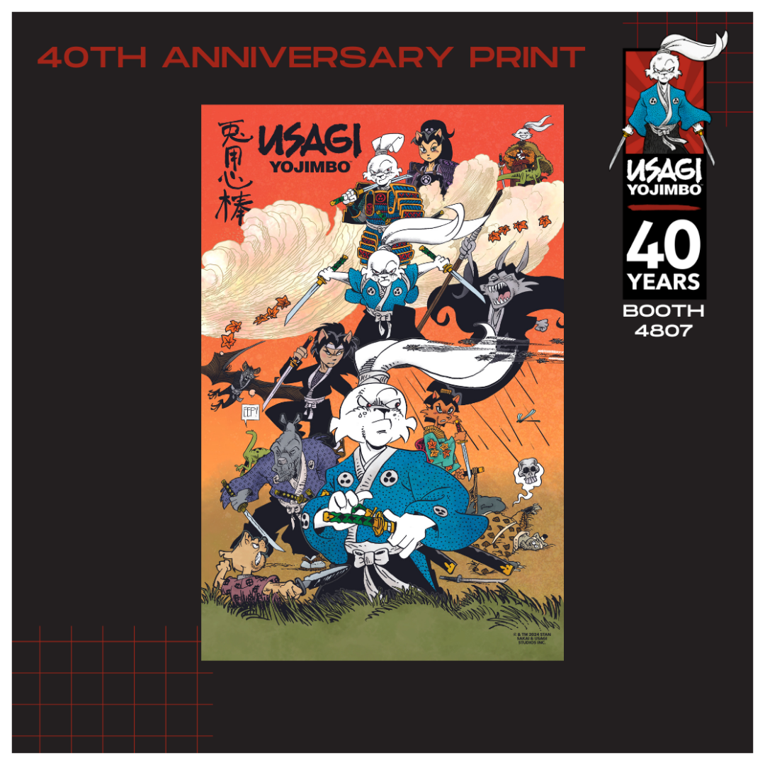 Celebrate 40 years of Usagi’s vibrant world with this new stunning 11x17 print! Capturing every detail with exquisite artistry, it’s a masterpiece that brings imagination to life. Perfect for any collector or enthusiast, this print is sure to inspire awe and admiration.