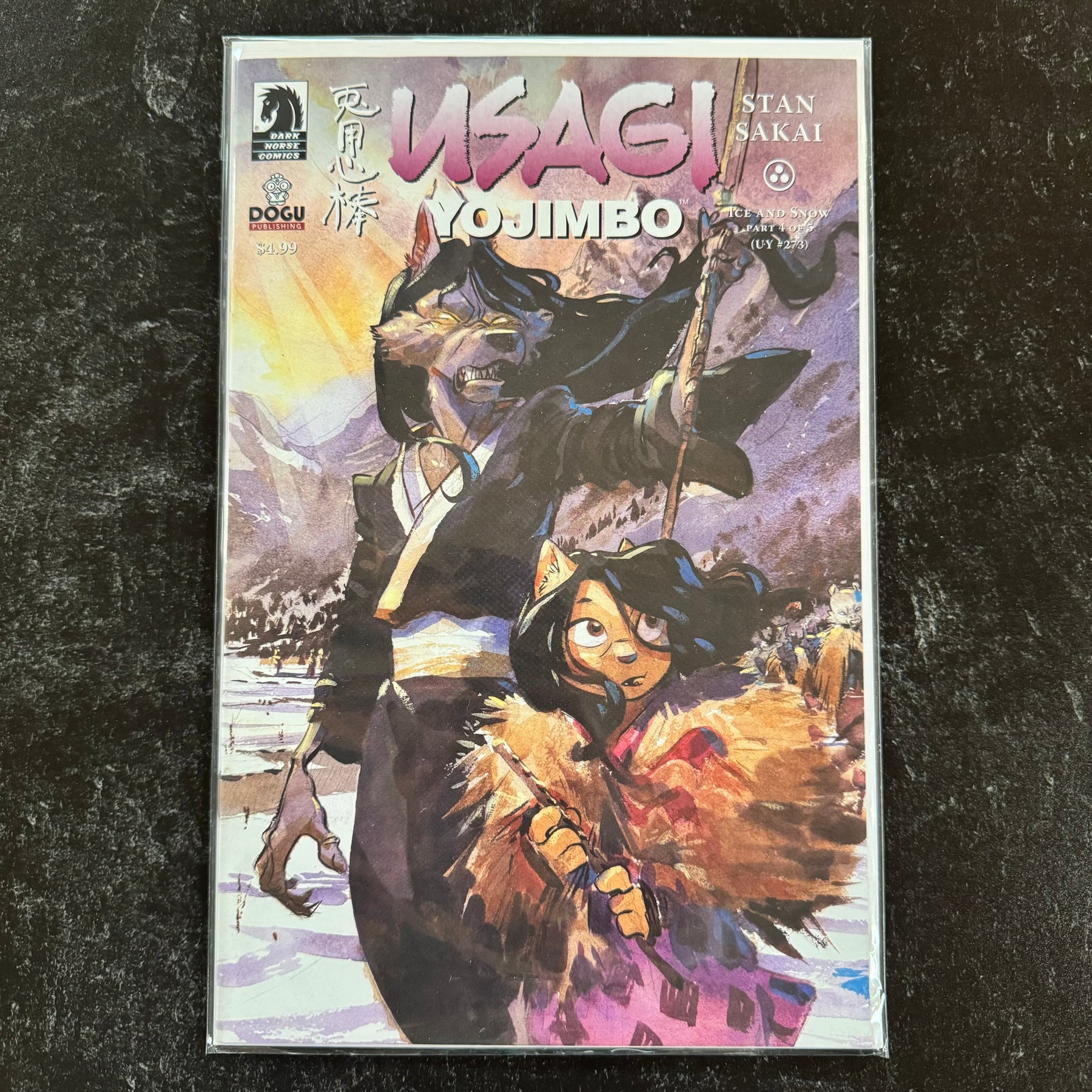 Jei and his now small band are hot on the trail of Usagi and Yukichi and finally track them down desperately trying to escape across a frozen lake. However, they are further down the snow-covered mountains and the ice is not as thick as they thought.