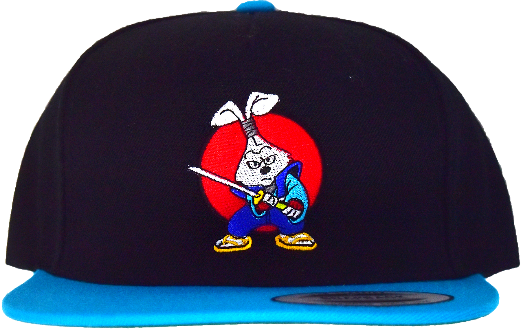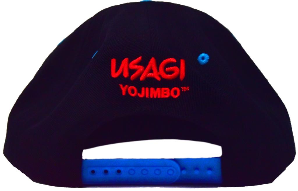 This is one of Sakai’s first character designs before his famous Samurai Rabbit was published in Albedo #2, in 1984! Classic flat bill, structured, snapback cap in Usagi blue and black. 80/20 acrylic/wool. Imported with embroidery finished in the USA. Limited to 150.