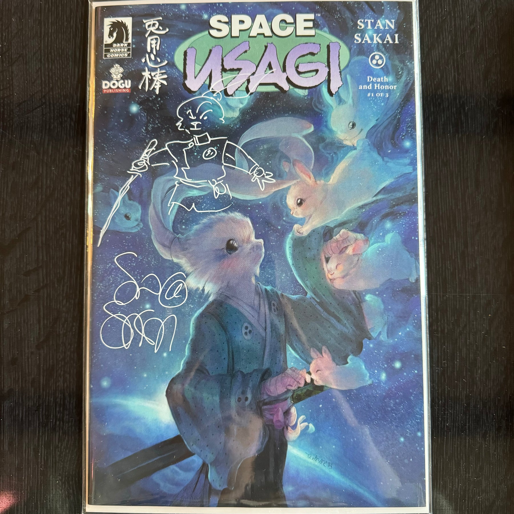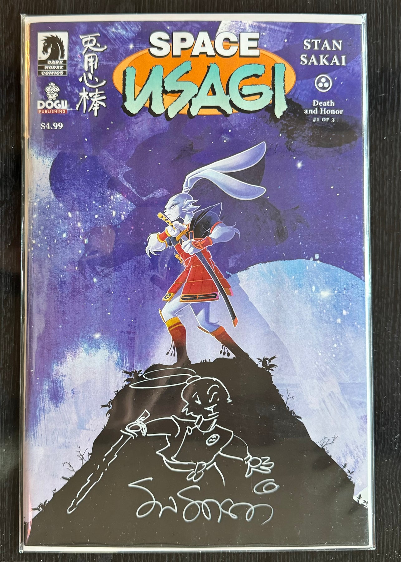 All signatures and remarques by Stan Sakai only.