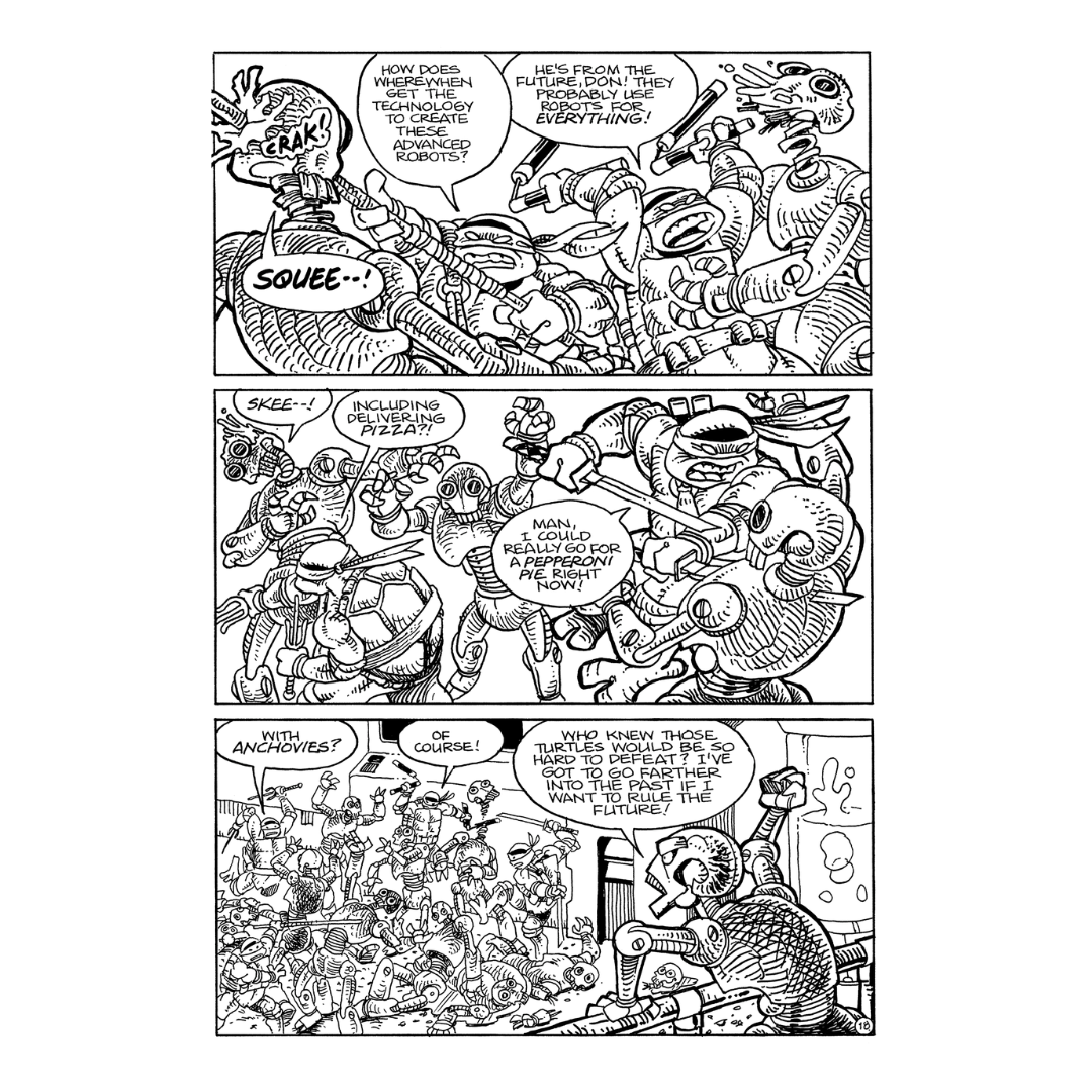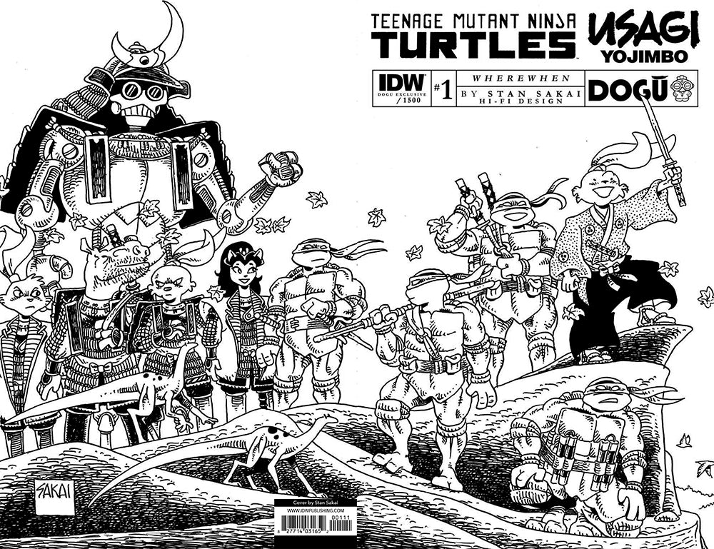 WhereWhen #1: The Teenage Mutant Ninja Turtles pursue the evil cyborg genius Dr. WhereWhen through a time portal and emerge in feudal Japan! There, they encounter Usagi Yojimbo, 20 years into the samurai's future but decades after the arrival of Dr. WhereWhen who has already carved himself a fiefdom using mechanized clockwork samurai robots with the intention of conquering both the past and current timelines!